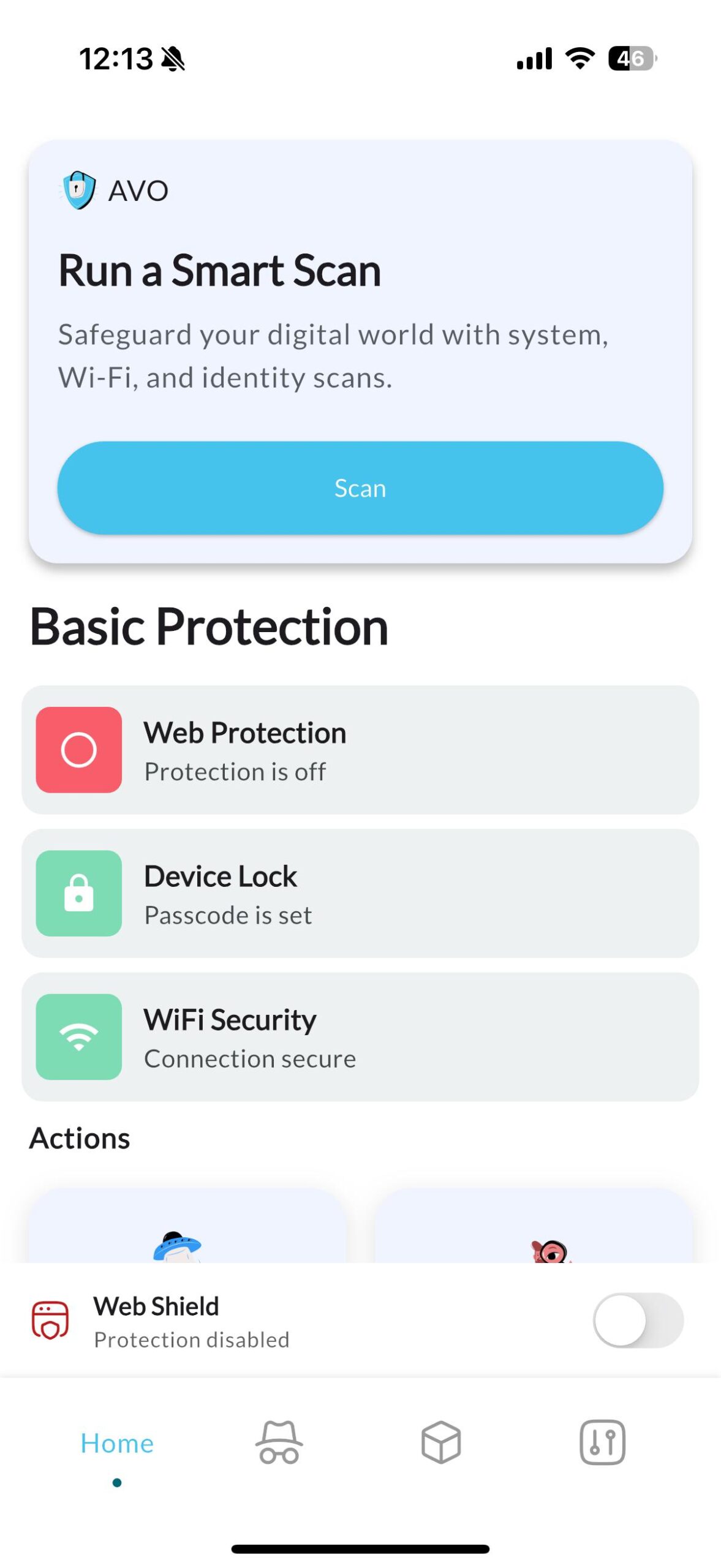 With just a single tap, AVO Mobile Security performs deep scans of your device, network, and personal data—identifying vulnerabilities and providing instant protection. Whether you’re connected to public WiFi or browsing from home, AVO ensures that your device and privacy remain safe.